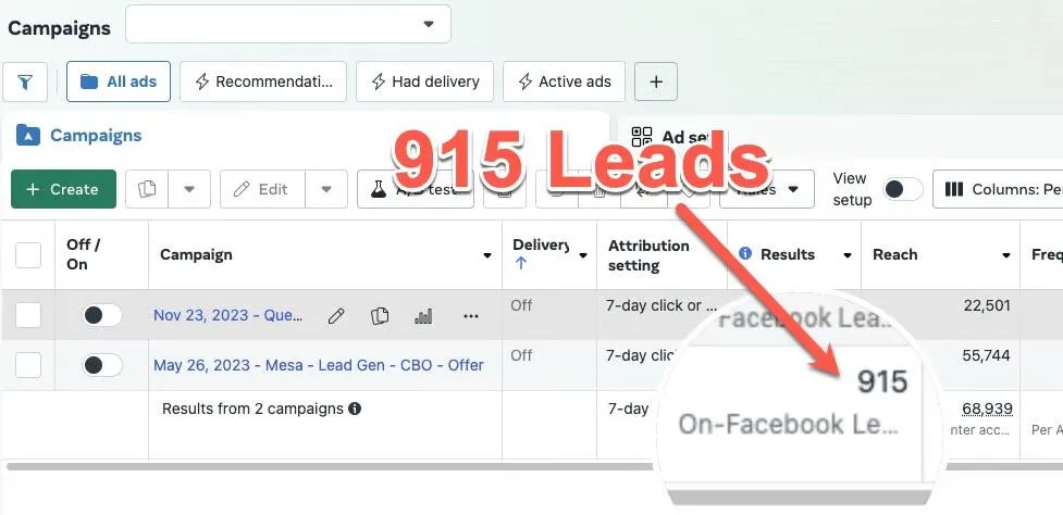 1,126 leads in 45 days; ~$2K costs → $10K+ back (5× ROI) - Mattress Store