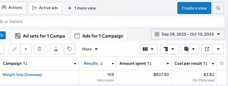 159 leads in 10 days on $607.90 - Medical Weight Loss
